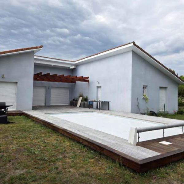Une terrasse qui avait perdu de son éclat sous l'effet du temps et des intempéries (bois grisé, aspect terne). Le client souhaitait non seulement retrouver l'aspect originel du bois, mais aussi améliorer l'accessibilité et le confort autour de la piscine.